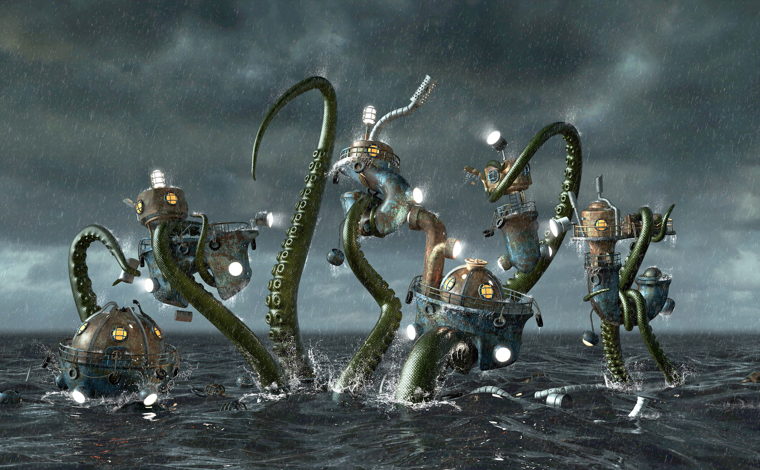 A quirky typographical piece inspired by countless monster movies. Each letter/ship and tentacles was modelled, sculpted, textured and lit to create the scene, a challenging but fun project to work on. I always found the term 'Oh Sh*t' funny no matter how serious and dire the situation.