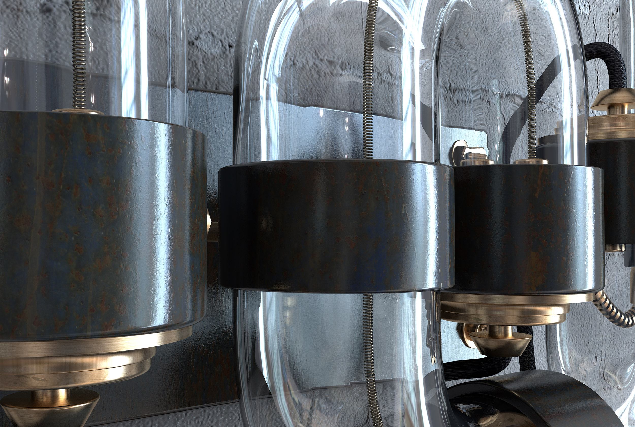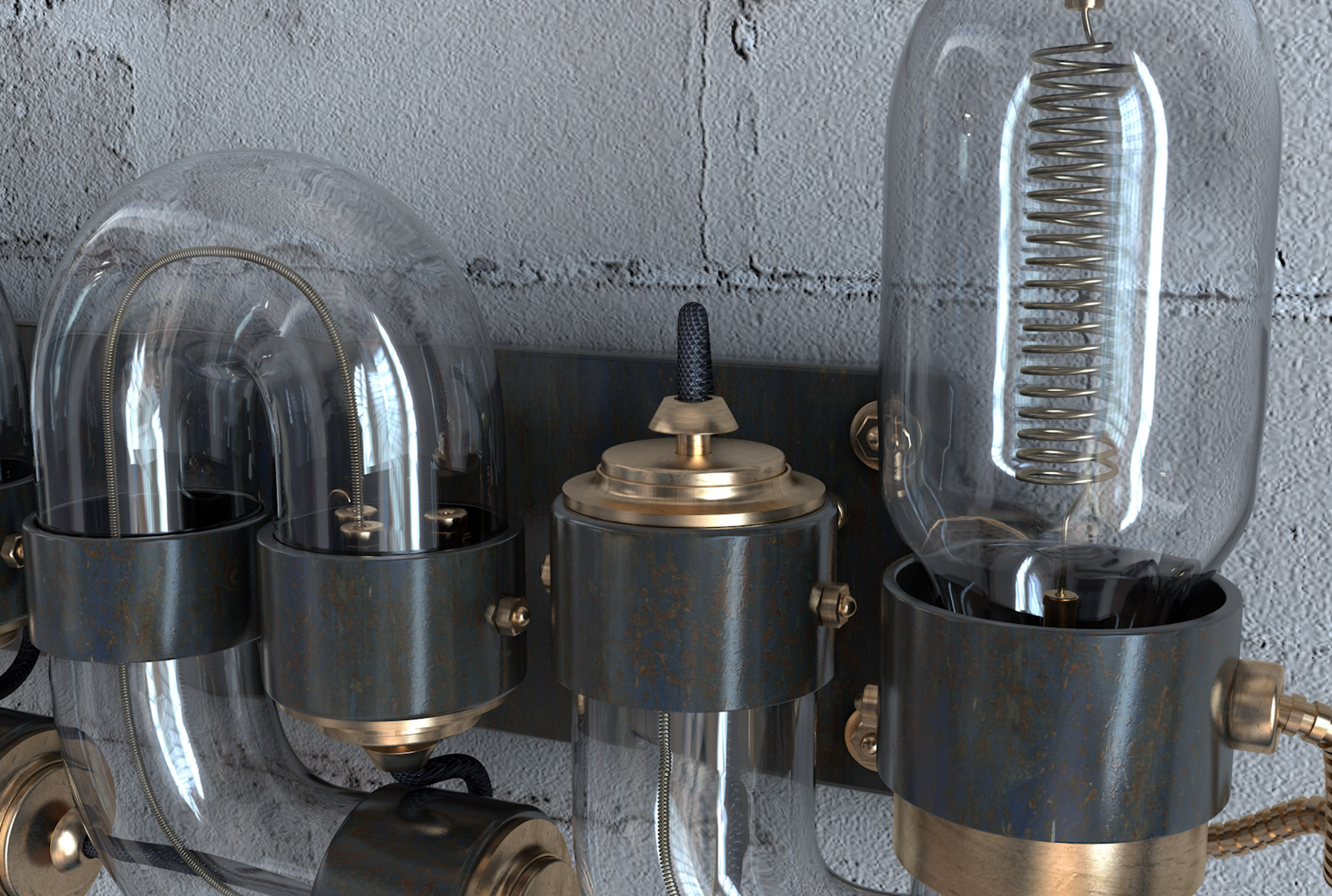 Modelled, textured and lit this project was heavily inspired by the victorian age using coils, filaments, bulbs and other industrial elements.
